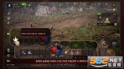 画面的中下方,以体力 / 魔力状态窗为中心,两侧具备快捷栏。其中,左侧放消耗品,右侧放武功(技能)。而放在快捷栏上的道具或者武功,可以通过快捷键,或者点击来使用。需要注意的是,如果往下拽快捷栏中的道具或者武功,就能自动使用。而且,如果往边上滑快捷栏,还能看到额外的快捷栏。自动战斗时,额外快捷栏的道具也能自动使用。