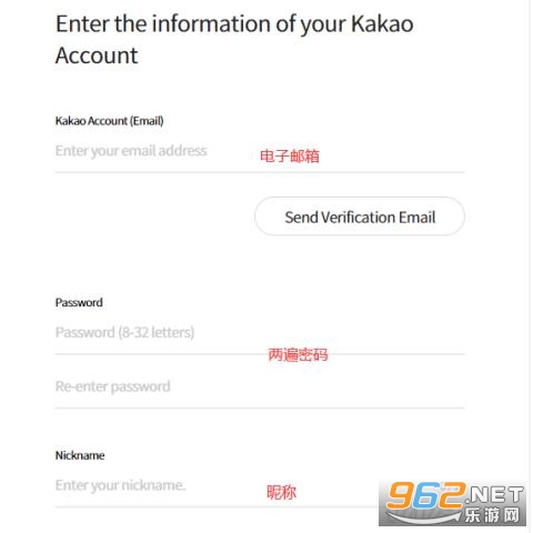 在同意所有条款后的新页面中会让我们输入电子邮箱、密码、昵称等资料。按照要求输入对应的资料就可以了。
