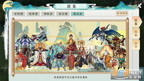 1、图鉴系统共分为【百妖图】、【妖绘卷】、【神仙会】、【法宝图】、【救兵录】五种