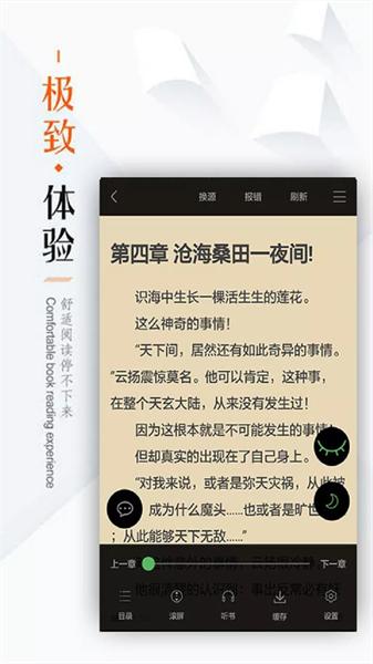 4、一键切换听书模式,智能语音为你自动朗读小说,解放了双手,随时随地听书。