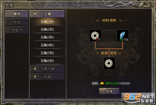2、可通过消耗玉佩碎片来提升,每提升1阶都会获得多种属性提升