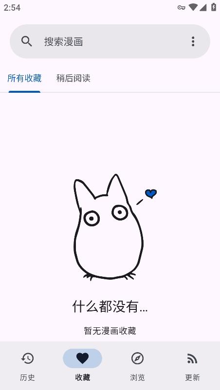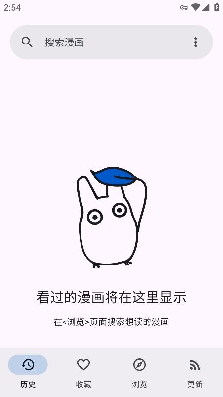 1、进入软件后,历史板块可以让大家查看自己看过的漫画作品,也可以进行搜索;