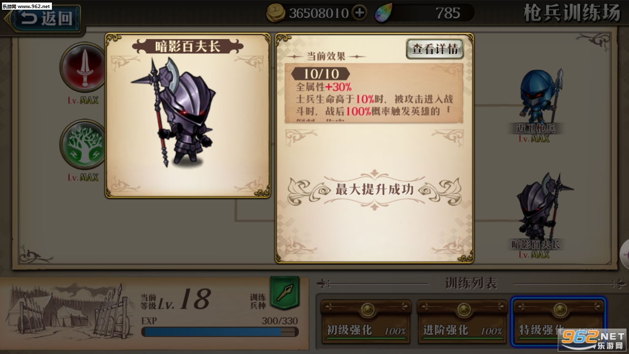 通过练兵场训练,可以解锁高级兵种,高级兵种基础属性会有所增加,并且会有更强大的兵种技能。解锁兵种也需要一定的训练道具,同样通过兄贵健身房副本可以获得