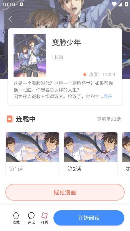 3、支持漫画的催更、收藏、评论、打赏,阅读的体验是十分丰富的。