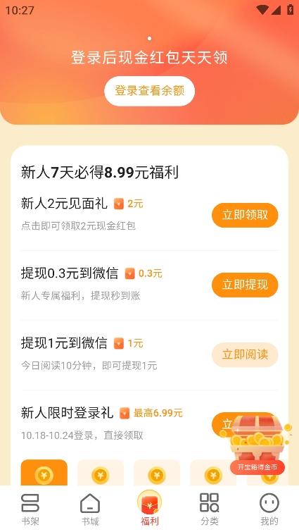 4、福利中有各种任务可以来轻松完成,获取金币即可进行兑换提现的。