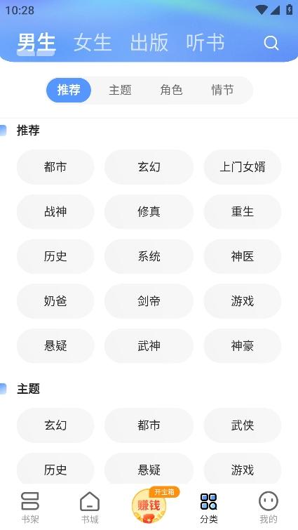 3、在分类中,有细致的小说分类频道,题材类型,能够让大家快捷挑选书籍;