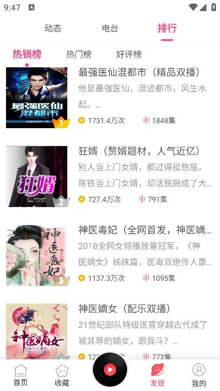 3、通过发现频道,有各类热销、热门、好评的榜单,都可以挑选收听;