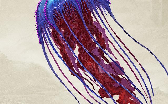 钵水母拥有多种水母的特征,继承了大型蛋黄水母的体型和形态,箱形水母的强力针刺,以及深海水母的生物发光特性。这一切结合而成了一种照亮海洋最深处的危险生物。