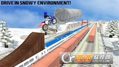 火车摩托特技是一款极限摩托车游戏,你可以通过摇杆试操作进行特技操作,摩托车与火车的组合,充满着奇幻元素。