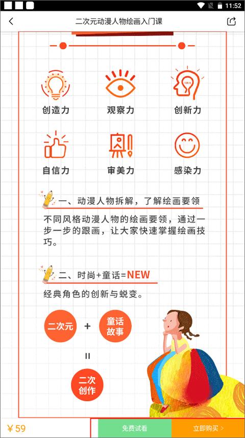 2、了解课程给孩子带来什么样的作用,你可以先免费试看,觉得不错就可以点击立即购买。