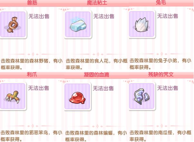更新后还新出了以下新材料[打败对应的怪物(包括boss)有概率获得]