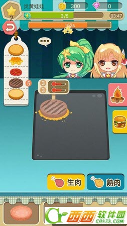 在材料都准备好之后,我们就要开始将成品汉堡制作出来了。汉堡之所以受到大家的欢迎,原因之一就在于它的內馅,包含汉堡肉、生菜、西红柿、黄瓜以及各式酱料的內馅,再用烤制的面包上下包夹起来,一个可口的汉堡就制作完成啦。在游戏中,如果玩家放材料的顺序错误了,也是会被扣分的哦,所以一定要认真看左边的提示哦。