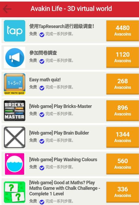 之后就能看到各种赚金币的任务了