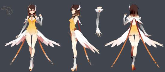 褐发却于发尾渐入亮橙色,整个服饰以现代感强烈的橙灰白为主色调的嫣汐是一个青春活泼、元气十足的十六岁少女。