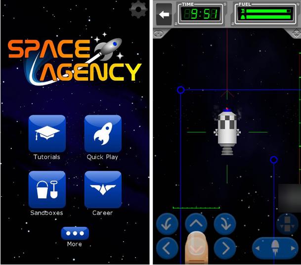 这款 Space Agency 包含 Tutorials、Quick Play、Sandbox 和 Career 四种游戏模式。