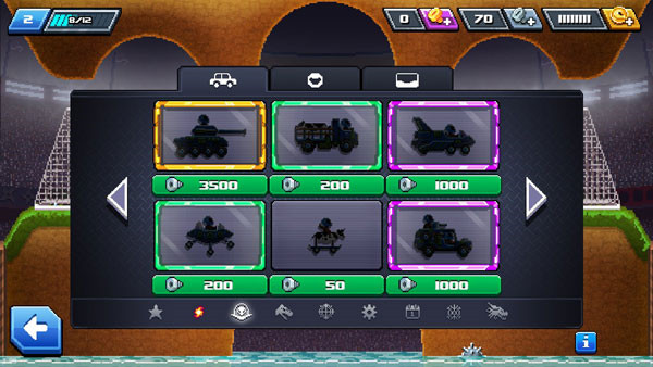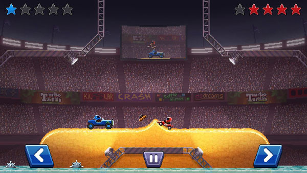 1、在两人竞赛中要特别小心保护你的车头!成功撞击到对方车头赢得比分。首先获得5个积分的玩家胜出。2、在竞技场上驾驶越野车、垃圾卡车和F1赛车。每种车辆都有自己的优胜劣势。