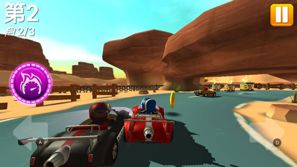 总体来说,游戏的玩法还是那么的千篇一律,左侧向左移动,右侧向右移动,以及加速和道具释放都非常的贴切有趣。
