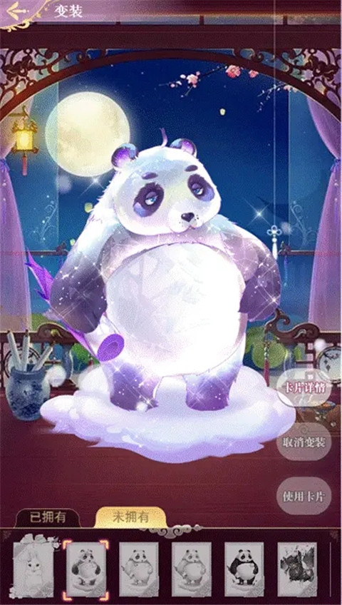 除了华美的服装外,陛下还可以变装成其他可爱的小动物哦~这就需要用到“变装卡”,目前有兔小仙、雪人、九凤、食铁神兽、避水金晴兽....,有了这些变装卡,陛下想变成什么都可以哦,要注意变装卡是分永久与限时的~