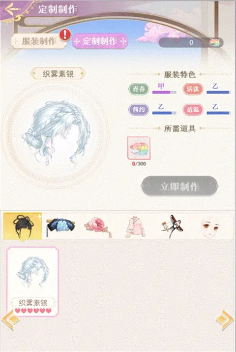 除了普通的制衣,现在还有一个定制制作哦,需要消耗流彩浮光锦制作六心服饰~