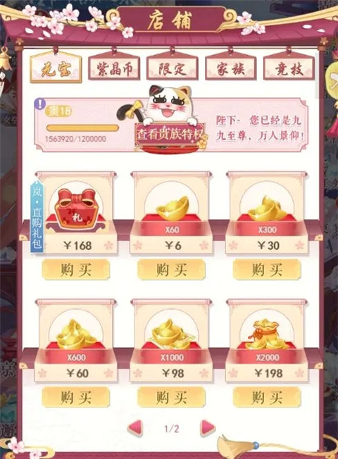 13、店铺(通关灵境关卡1-11开启):店铺是陛下买买买的圣地,想要什么就去淘一淘吧,上凰国的GDP增长就靠陛下带动啦!