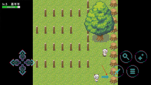 3、左下角的上下左右可以控制喜羊羊在地图上自由移动。