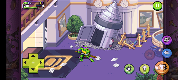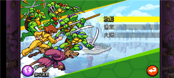 忍者神龟施莱德的复仇是一款以忍者神龟为主题展开的角色冒险类pc游戏,而最近这款游戏移植推出了手游版本——忍者神龟施莱德的复仇安卓版,在这里玩家们将体验这款80年代风格的精彩清版动作游戏,与莱奥纳多、拉斐尔、多纳泰罗和米开朗基罗等老友一起惩奸除恶。游戏中玩家们将再一次化身精壮有力、身怀绝技的绿色忍者神龟,挫败朗格和施瑞德的最新丑恶计划!重现了《忍者神龟》的众多经典格斗场景。而且在忍者神龟施莱德的复仇中文最新版中还内置了多个章节供大家挑战,使出凶悍的忍者连环招式,逐一破解十几个关卡,击败巴克斯特·斯托克曼、泰瑟兰顿等一众宿敌!当然如果你觉得普通的章节的难度没意思,你还可以选择其他难度进行挑战,从而体验不一样的游戏乐趣!
