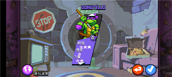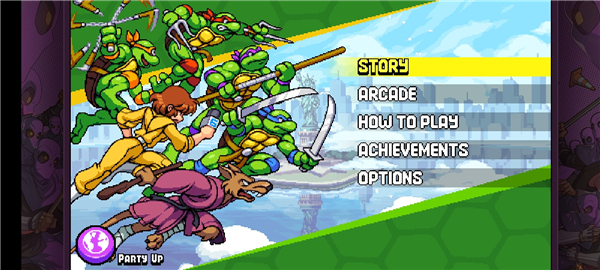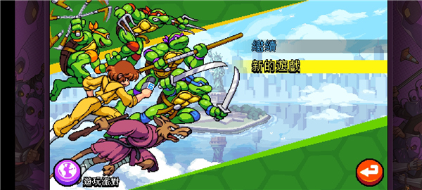 1、与《忍者神龟》的经典角色一起通关,包括忍者神龟英雄莱奥、拉夫、唐尼和麦奇,也可选择新增游戏角色爱普、斯普林特师父或凯西·琼斯!