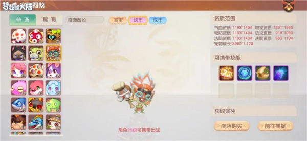 前期造梦者可以通过完成主线任务,获得一只4技能的35级奇面酋长。这只系统赠送的奇面酋长可以直接用,作战能力还是十分给力的。