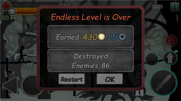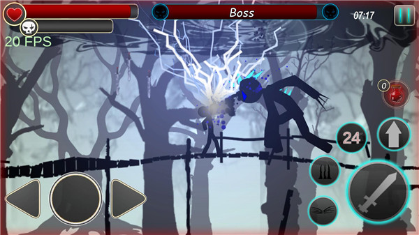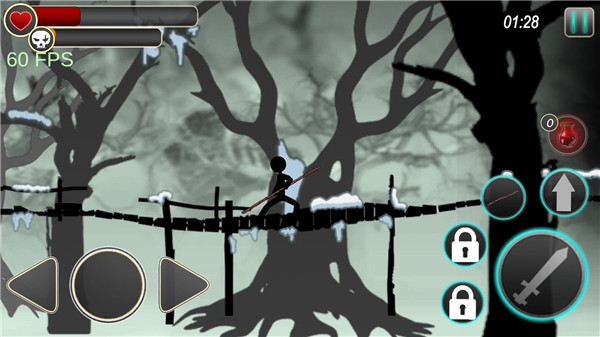 1、暗黑简约的游戏画面,热血刺激的游戏玩法,让玩家清楚的享受火柴人热血冒险。