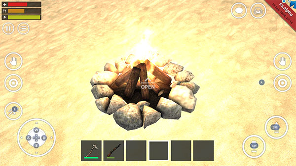 9、移动角色焦点,当营火上出现OPEN图标后可通过点击“眼睛”图标使用营火。