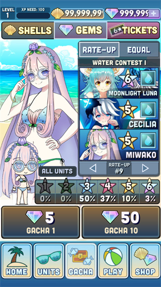 1、超过140个不同的动漫人物,包括罕见传说中的6颗星!2、自定义您的海滩!购买冲浪板,沙滩球,船,多在店!