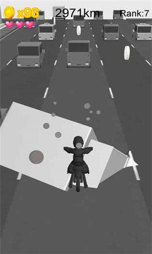 向左滑动摩托车将会左移,向右移动摩托车将会右移,你可以收集路途中的金币,当车子被损坏时候可以通过消耗金币进行修复