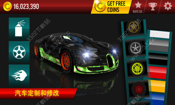 3、汽车定制和修改:给您的爱车涂上25种颜色。自定义您的车辆,支持各种各样的装饰和轮辋修改。