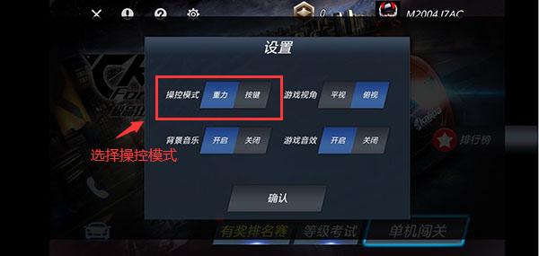 3、点进去就可以看到,操控模式选择,重力模式或者是按键模式了。