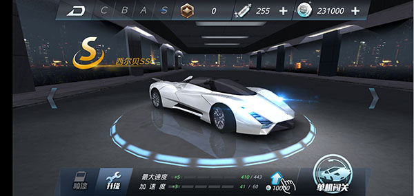 4、还有可以切换和购买车辆,需要花很多金币,每辆车都能够进行升级,提升性能。