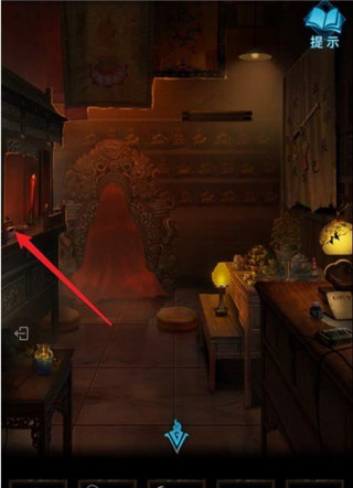 31、返回“六宝阁”,点击左边的神龛,在碗中点燃【纸扎寺庙】,香炉中插上六炷香并点燃,左右两边都贴上【符纸】,剧情过后,第二章结束。