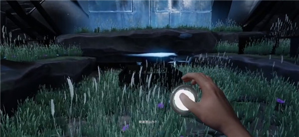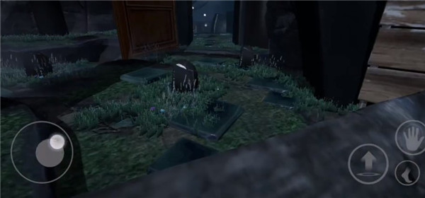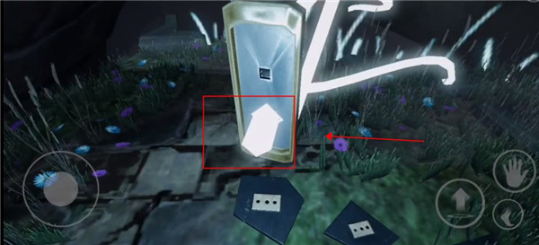 2、来到此处后和这个石台互动,然后沿着石柱倒塌的方向走进入洞中
