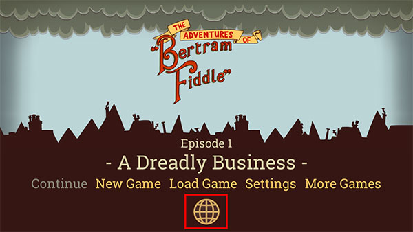 1、打开伯特伦费德历险记1游戏中文版,进入,点击页面上的地球图标。