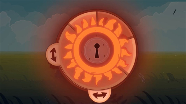 6、拿到钥匙之后就可以回到门这里,将图案旋转到全部为红色就能够开门。