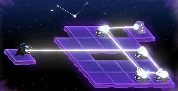 每只小怪兽背上的棱镜箭头标记了该怪兽可以将光线折向哪个方位;