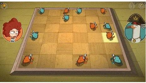 玩家每次可控制一只螃蟹横向或纵向移动,螃蟹移动格数不限,遇到其它螃蟹或边界时停止
