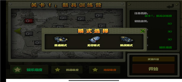 3、游戏中拥有娱乐、普通、地狱三个难度,多种关卡,选择你的游戏难度开始游戏;