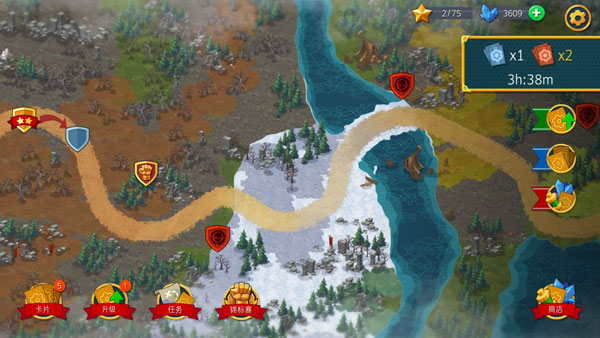 2、该游戏在基础的塔防玩法下没有什么根本性的变化,只有你能成功抵御怪物的路线入侵即可挑战成功,但游戏的独特性在于这里的防御采用了卡片形式,玩家们则需要根据已有的卡片来部署塔防,塔和炮塔代表战士,弓箭手保卫你的宝座。