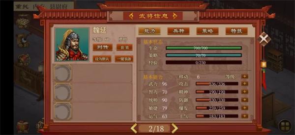 魏延作为卧龙篇诸葛亮手下第一大将,出场次数和排面是少不了的,经常单独带兵作战。魏延大佬五维合格,四转的时候把运气补档即可。大招吸血和将技万夫莫开保证了他十分抗揍,勇将也属于优势兵种,对近战部队加伤的同时,地形也好好于一般骑兵。如果没有物理系内购推荐把他武力吃到125(需要转生丹),另一种是纯钧智将流,吃5布阵令提档统御保证生存,技能可以响应皮肤的双倍伤害,巨爽!因此两种路线都可以走,看玩家自己喜好。