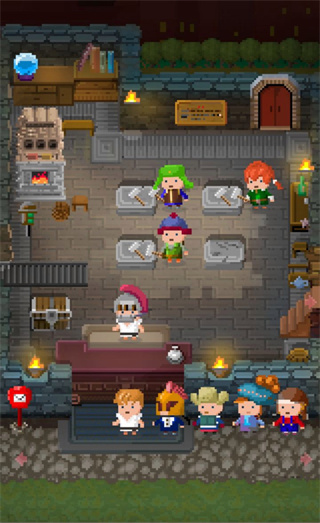 锻冶屋英雄谭1经典版是一款模拟经营放置类游戏,故事背景发生在不知道哪一个时期的大锻冶时代,所有人都在开铁匠铺,冶炼出装备去赚钱,而你就是这个时代应运而生的未来铁匠之王,所有来买过你武器的顾客都会成为听你调遣的英雄。在游戏中玩家将扮演的就是一位武器店的老板,在这期间你需要研制武器、招募工人、安排挖矿、探索、锻造等任务,并向英雄出售武器,以帮助英雄打败一波又一波的强大魔物。