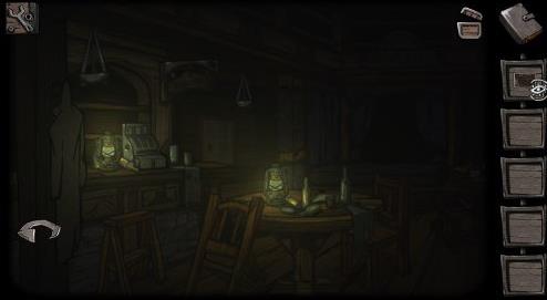 19、点击进入酒吧,使用火柴点燃酒吧桌子上的两盏油灯。