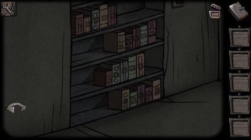 6、根据餐桌上的15、23、34、41四个数字一一对应书柜上的书本查看,点击第1排书架的第5本书。
