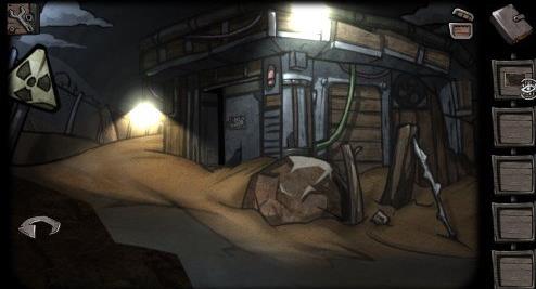 22、查看仓库房前大铁门上的多个齿轮装置,点击将齿轮放入墙壁上的装置。