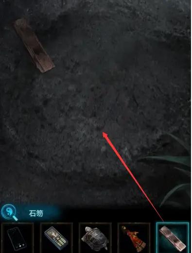 7、接着男人出门把远处石盘上的小王八拿走换成瓷勺,然后点击远处地皮,使用石笏挖土即可获得石冠。