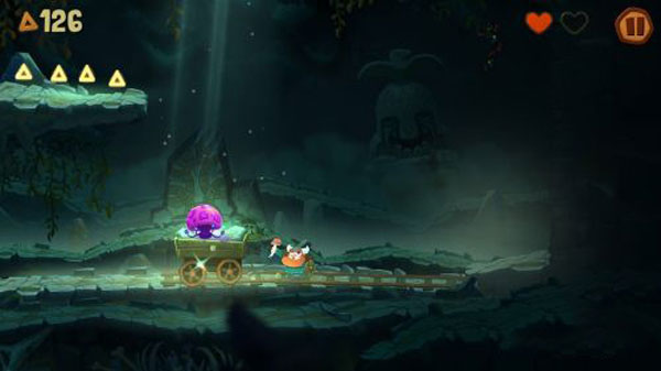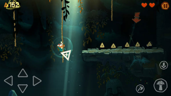 游戏中充满了富有想象力的视觉设计和创意挑战,采用双指操作,玩法十分简单:左手拇指滑动以行走、攀爬,右手拇指向上轻扫以跳跃,点按来进攻,向下轻扫来盾击。物理引擎打磨之出色,反应之精准流畅,使游戏具备精妙的手感。